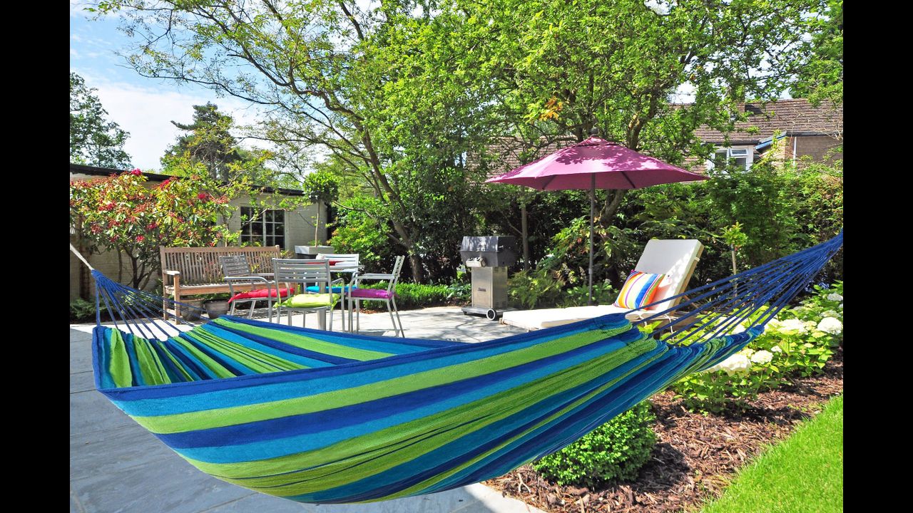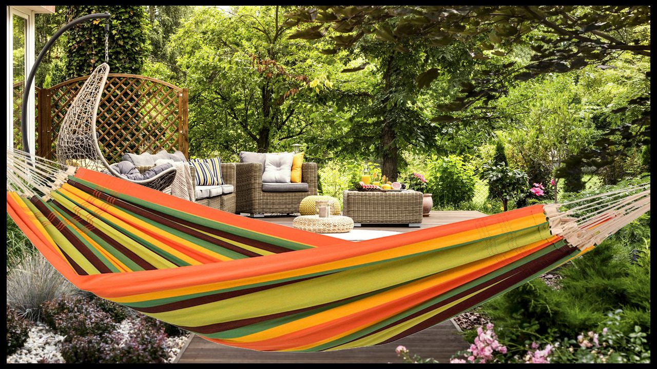 Hamak idealnie nadaje się do ogrodu czy na taras. Wspaniałe rozwiązanie dla wypoczynku na świeżym powietrzu. Łatwy w montażu, zajmuje mało miejsca.