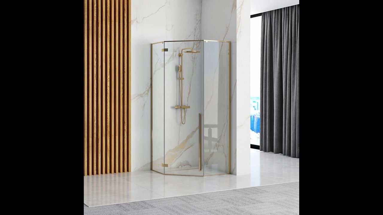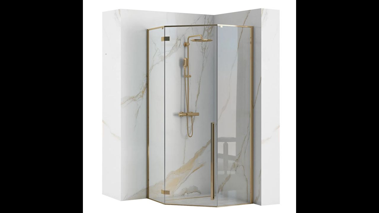 Stylowa kabina prysznicowa Rea Diamond Gold o wymiarach 90×90 cm została wykonana z bezpiecznego, przezroczystego szkła hartowanego. Model nadaje się do zamontowania na posadzce lub brodziku.