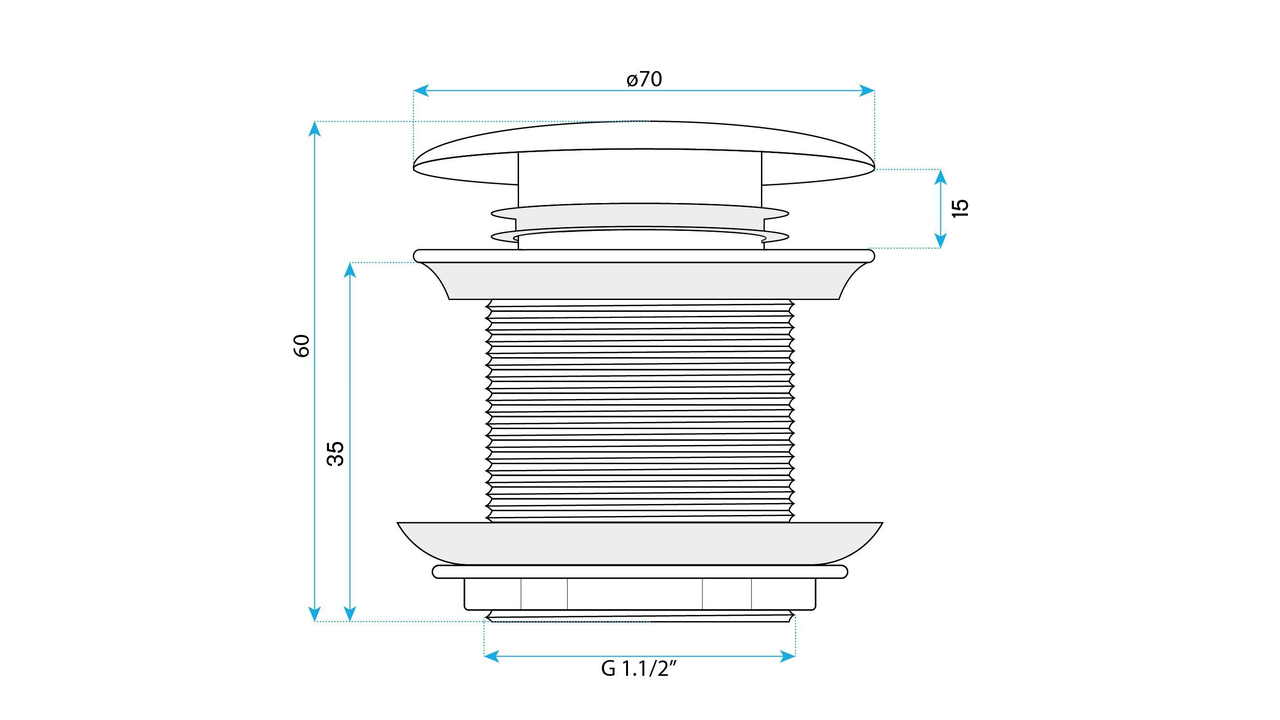 Prezentujemy korek klik-klak wannowy bez otworu przelewowego, wykonany z wysokiej jakości mosiądzu. To uniwersalne rozwiązanie, które pasuje do każdej wanny ze standardowym otworem odpływowym o średnicy 48 mm – zarówno do modeli wyposażonych w przelew, jak i tych bez przelewu.