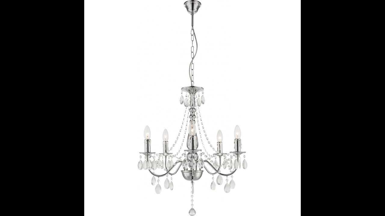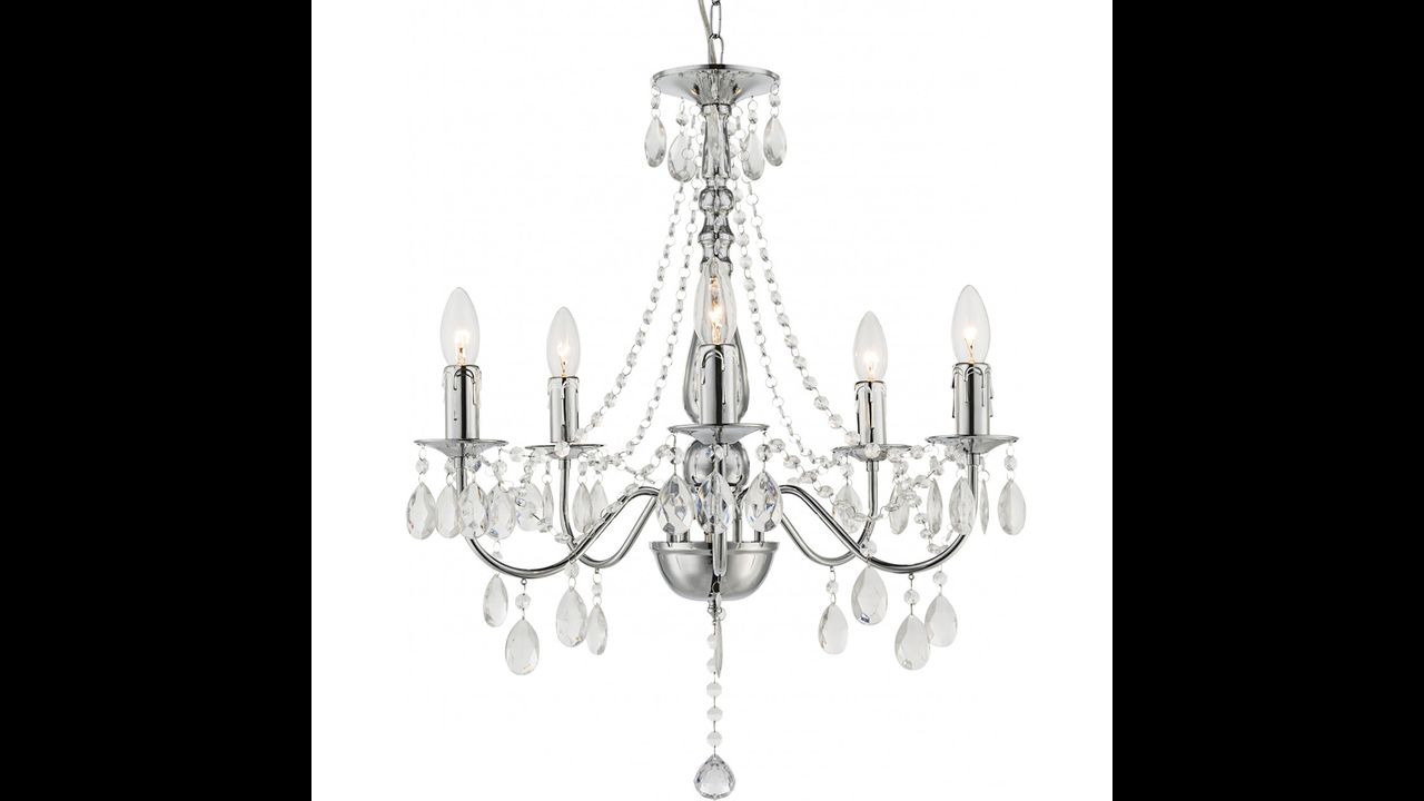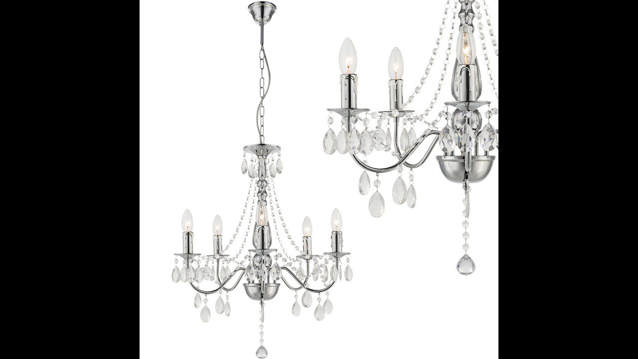 Stylowy żyrandol wiszący z pięcioma punktami światła to idealne połączenie klasyki i nowoczesnego szyku. Metalowa konstrukcja w chromowanym połysku tworzy solidną podstawę dla dekoracyjnych zawieszek z tworzywa, które subtelnie odbijają światło, tworząc wyjątkowy efekt rozświetlenia wnętrza.