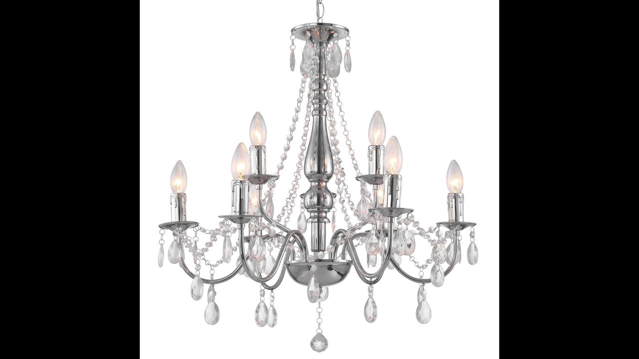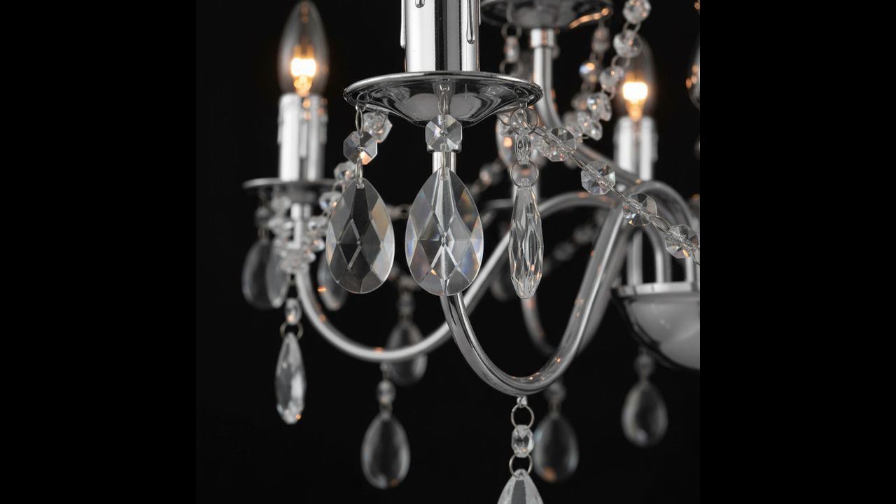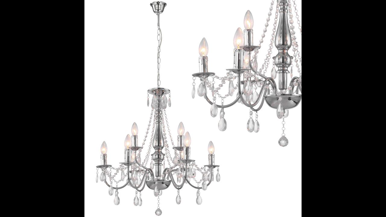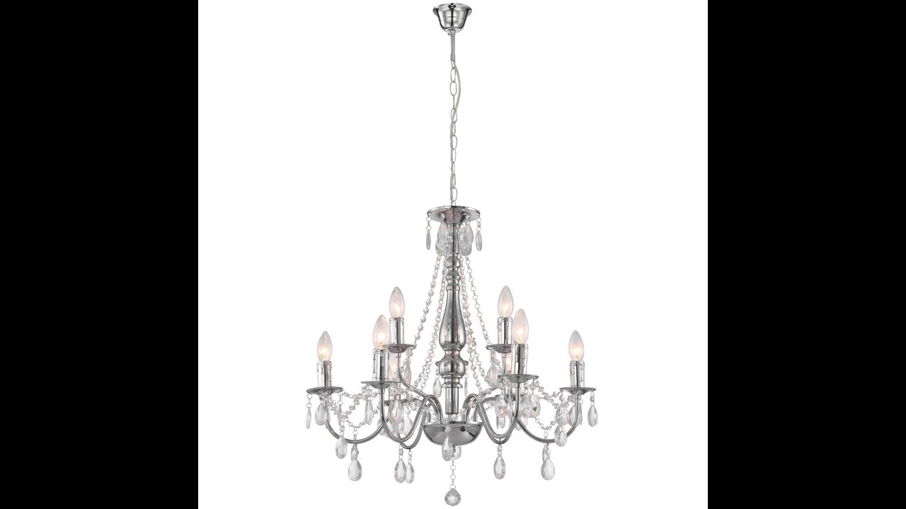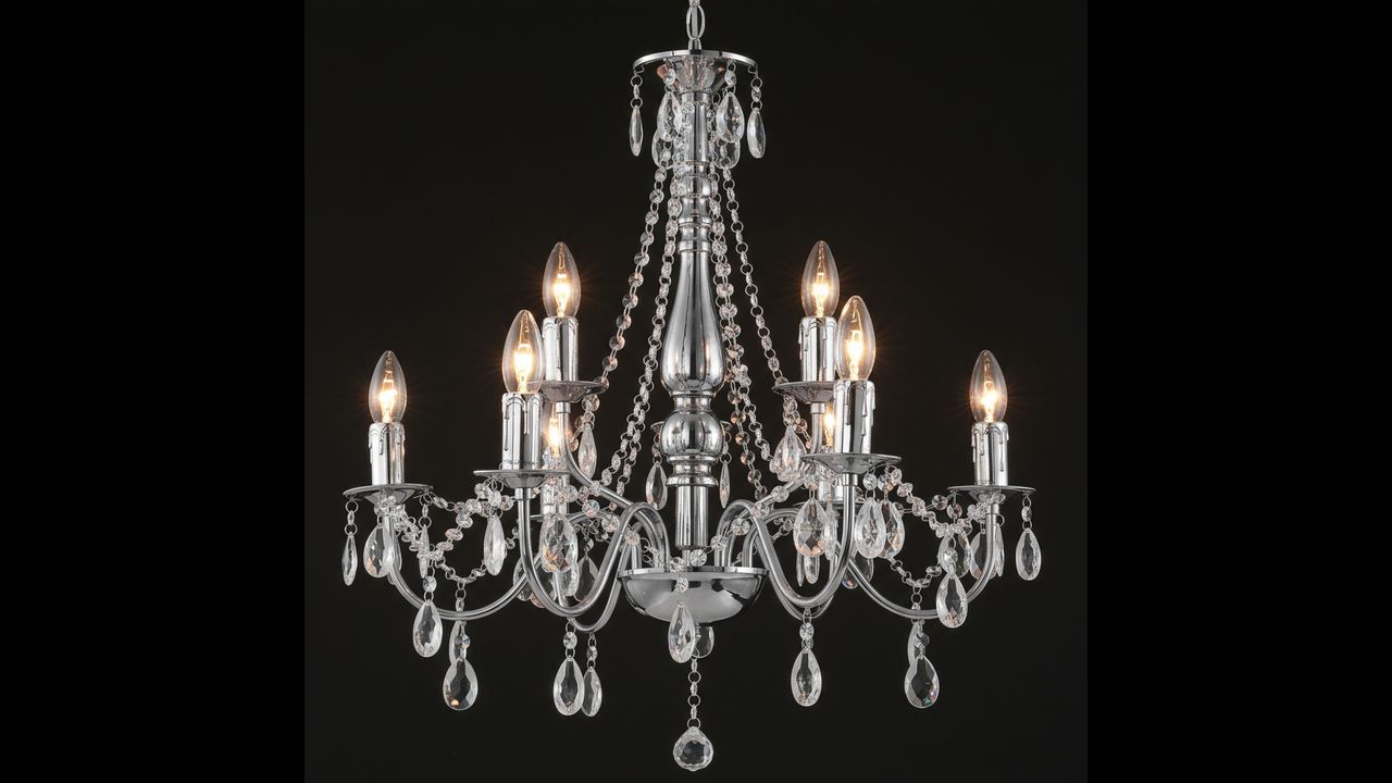 Stylowy żyrandol wiszący z dziewięcioma punktami światła to idealne połączenie klasyki i nowoczesnego szyku. Metalowa konstrukcja w chromowanym połysku tworzy solidną podstawę dla dekoracyjnych zawieszek z tworzywa, które subtelnie odbijają światło, tworząc wyjątkowy efekt rozświetlenia wnętrza.
