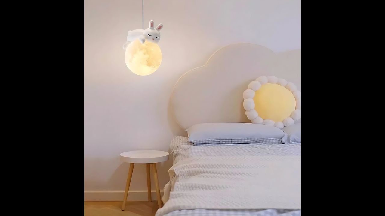 Urocza lampa sufitowa z motywem śpiącego króliczka na księżycu to wyjątkowe oświetlenie stworzone z myślą o pokojach dziecięcych. Bajkowy design przyciąga uwagę i wprowadza do wnętrza ciepłą, spokojną atmosferę, sprzyjającą relaksowi oraz zasypianiu. To nie tylko funkcjonalne źródło światła, ale także niezwykle efektowna dekoracja, która nadaje pomieszczeniu przytulny i magiczny charakter.