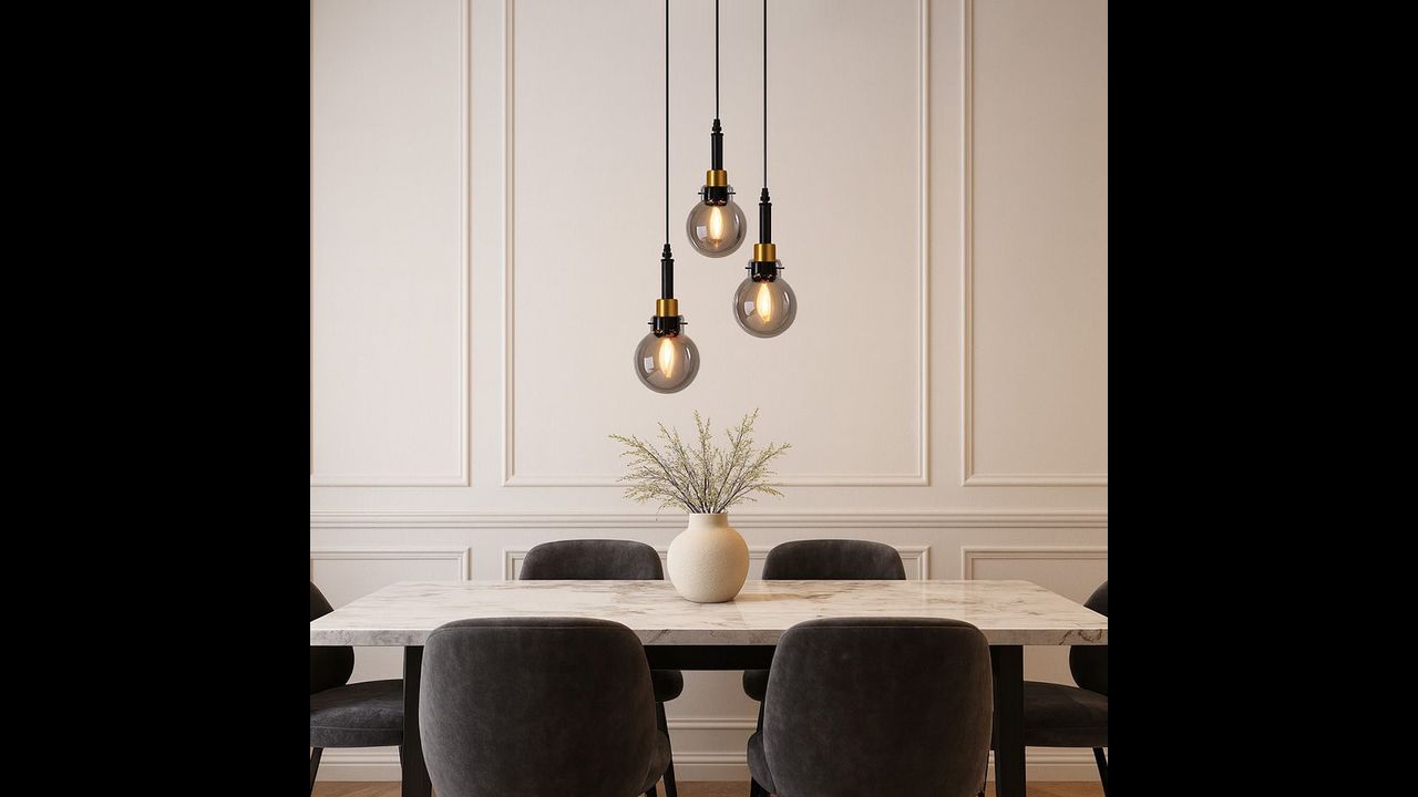 Elegancka kombinacja czerni i złotych akcentów doskonale podkreśli charakter aranżacji — zarówno w salonie, jadalni, jak i nad stolikiem kawowym. Trzy punkty światła zapewniają równomierne oświetlenie strefy, a możliwość dopasowania długości zawieszenia pozwala idealnie ustawić lampę do wysokości pomieszczenia.