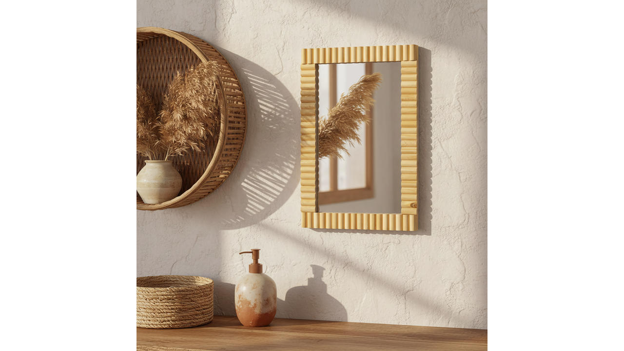 Chcesz wprowadzić do swojego wnętrza odrobinę natury i przytulności? Odkryj wyjątkowe lustro ścienne Bamboo w kolorze naturalnym. To idealny dodatek dla miłośników stylu Boho, który dzięki ramie wykonanej z bambusa nadaje pomieszczeniu ciepły, organiczny charakter. Jego staranne wykończenie i uniwersalny design sprawiają, że doskonale sprawdzi się w salonie, sypialni czy łazience.