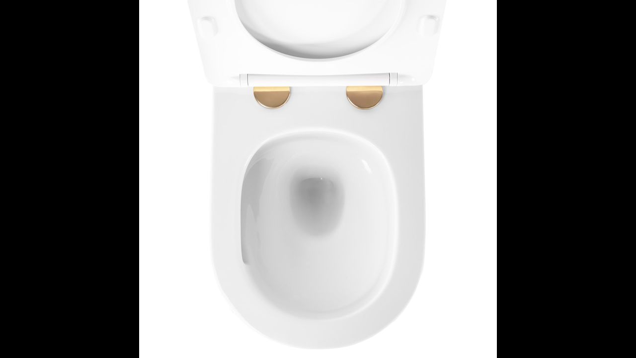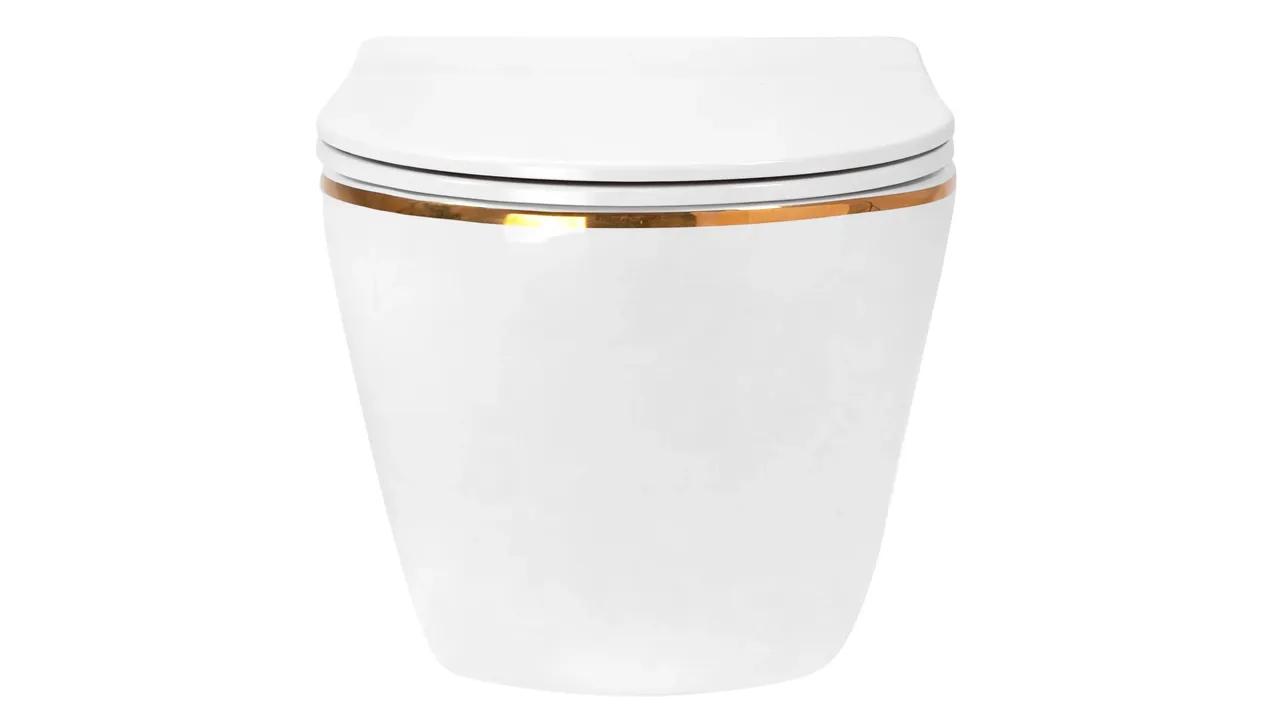 Misa WC podwieszana bez kołnierzowa biała ze złotym rantem z innowacyjnym systemem spłukiwania Tornado Nfq (Noise-Free Quiet) to nowoczesne rozwiązanie, które łączy elegancję, łatwość utrzymania czystości i efektywność spłukiwania. Bez kołnierzowa konstrukcja nie tylko dodaje nowoczesności, ale także ułatwia utrzymanie czystości wokół miski. Zaprojektowana z myślą o oszczędności i ekologii, misa zużywa minimalną ilość wody, nie rezygnując przy tym z wysokiej skuteczności spłukiwania. Misa pasuje do większości stelaży podtynkowych Geberit, Grohe, Sanit, Rea.