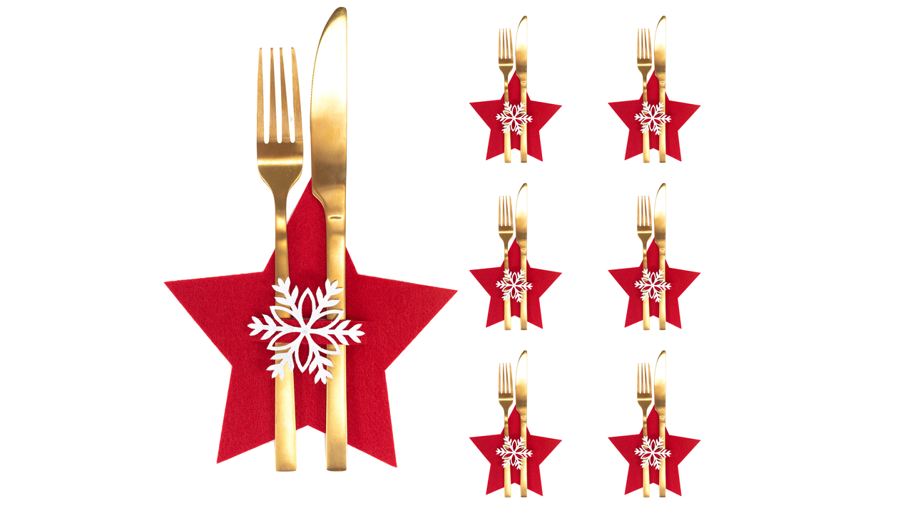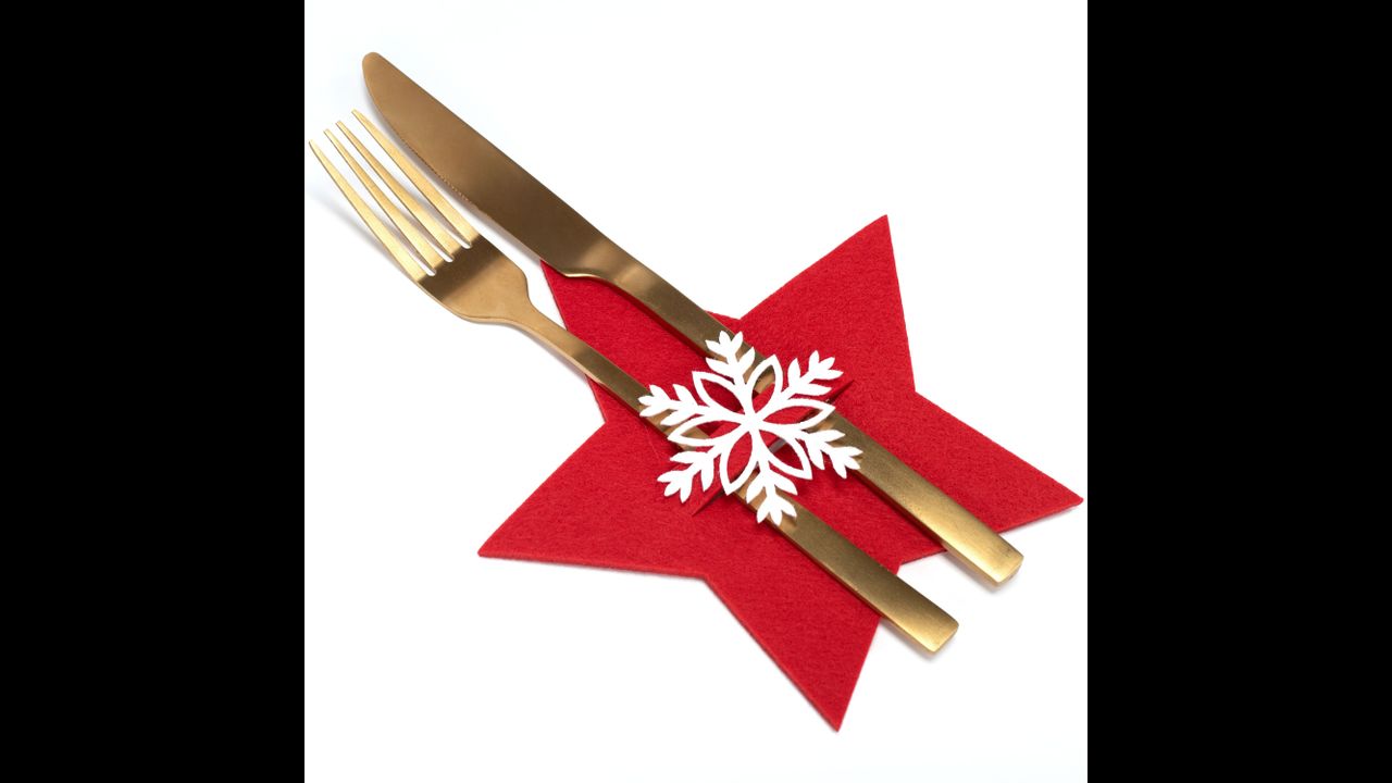 Piękne dekoracyjne pokrowce na sztućce z motywem gwiazdy. Wspaniała dekoracja stołu w świątecznym okresie. Pokrowce na sztućce z serii świątecznej sprawią, że Boże Narodzenie będzie jeszcze piękniejsze.