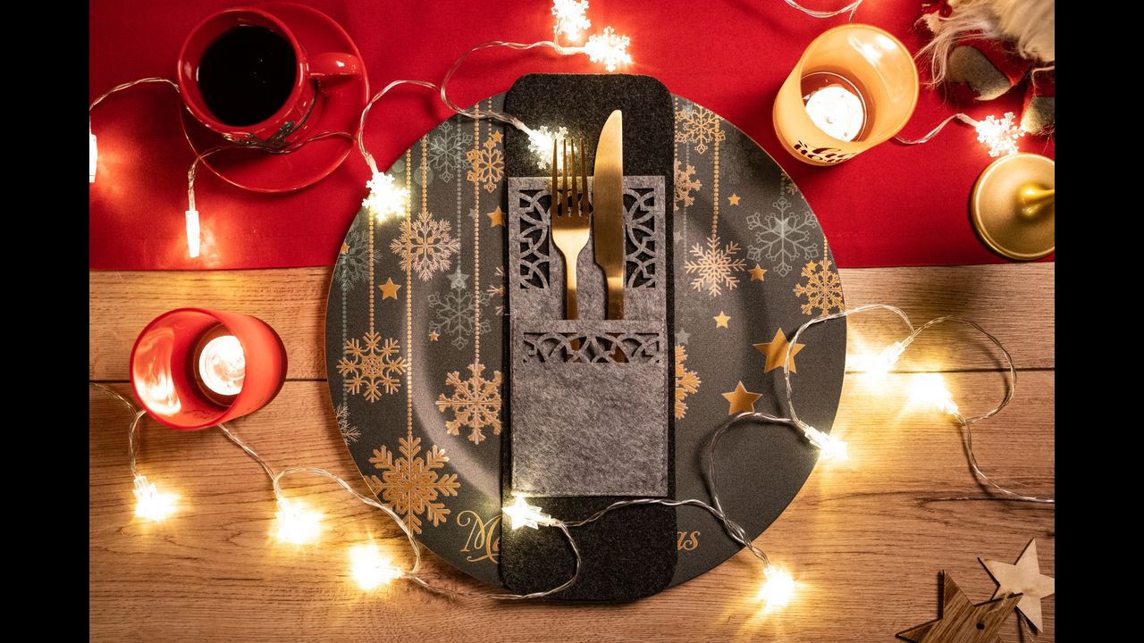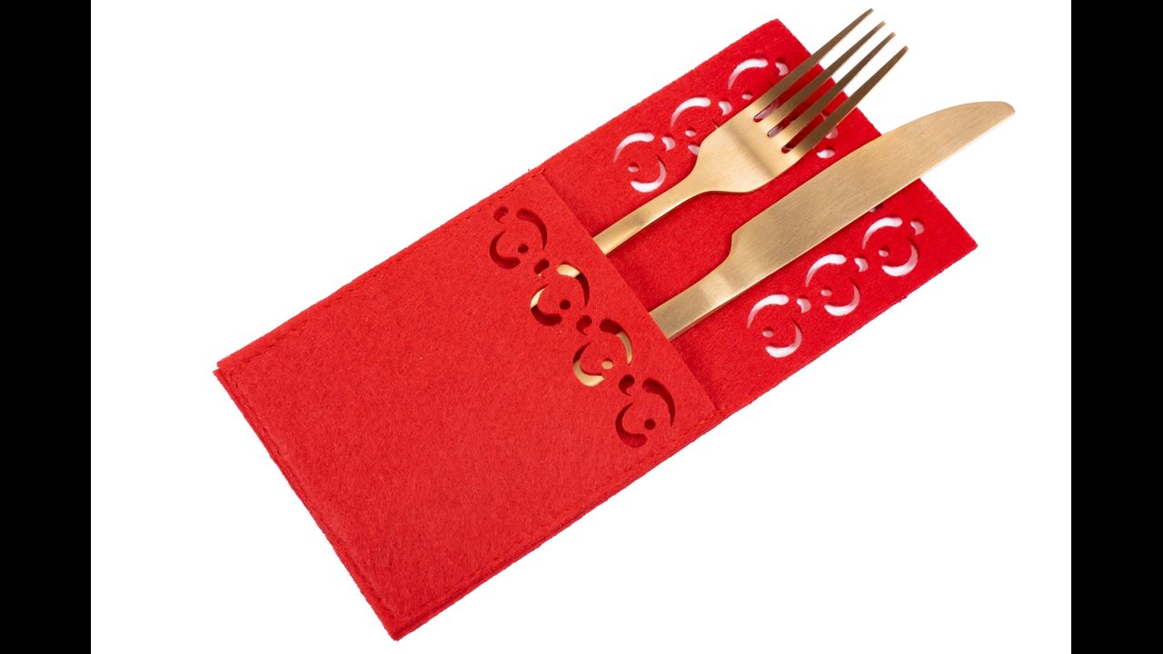 Piękne dekoracyjne pokrowce na sztućce z motywem ażurowym. Wspaniała dekoracja stołu w świątecznym okresie. Pokrowce na sztućce z serii świątecznej sprawią, że Boże Narodzenie będzie jeszcze piękniejsze.