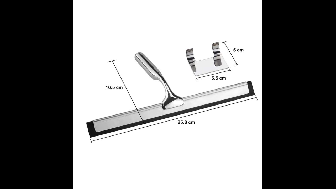 Rączka i gumowy element mocujący wykonane są z metalu odpornego na zarysowania i korozję. Wystarczy kilka ruchów, by kafelki łazienkowe, kabina, czy też lustro pozostało suche i czyste, bez plam i zacieków.