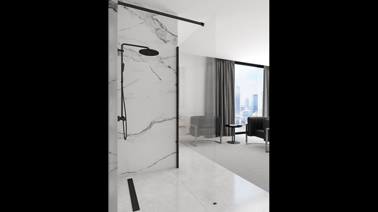 Prezentujemy Państwu piękną i niezwykle funkcjonalną i nowoczesną ściankę prysznicową. Jest to produkt, który w doskonały sposób wypełni Państwa przestrzeń łazienkową zachowując nienaganny wygląd i estetykę wnętrza. Ścianka jest przystosowana do montażu na brodziku lub z odpływem liniowym. Została wykonana z wysokogatunkowego transparentnego szkła ryflowanego. Ryflowania to efekt uzyskany poprzez głębsze i regularne żłobienia, przypominające pionowe, drobne pasy. Prążkowana szyba wprowadza do pomieszczenia dynamiczność oraz przytulny, kameralny klimat.