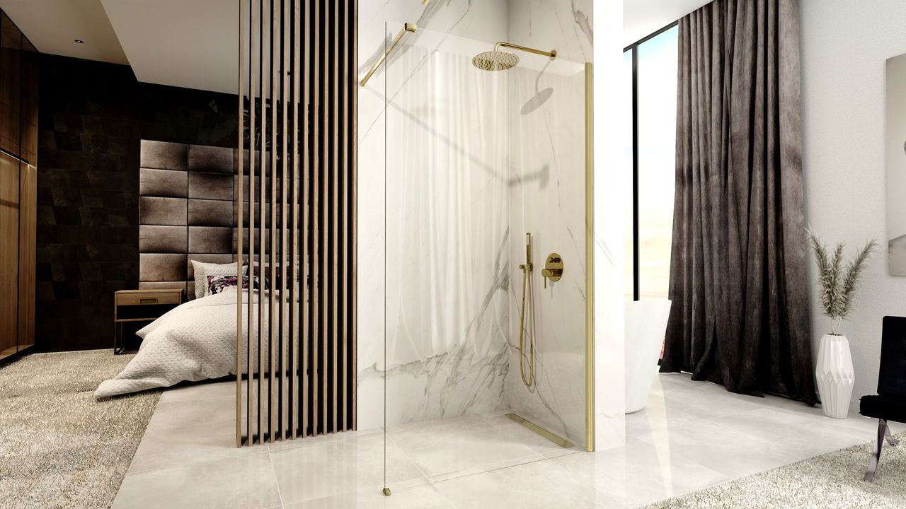 Ścianka prysznicowa Rea Aero w kolorze złotym szczotkowanym to idealne rozwiązanie do nowoczesnych łazienek, w których liczy się zarówno funkcjonalność, jak i stylowy wygląd. Elegancka rama w modnym odcieniu złota pięknie kontrastuje z transparentnym szkłem, dodając wnętrzu luksusowego i designerskiego charakteru.