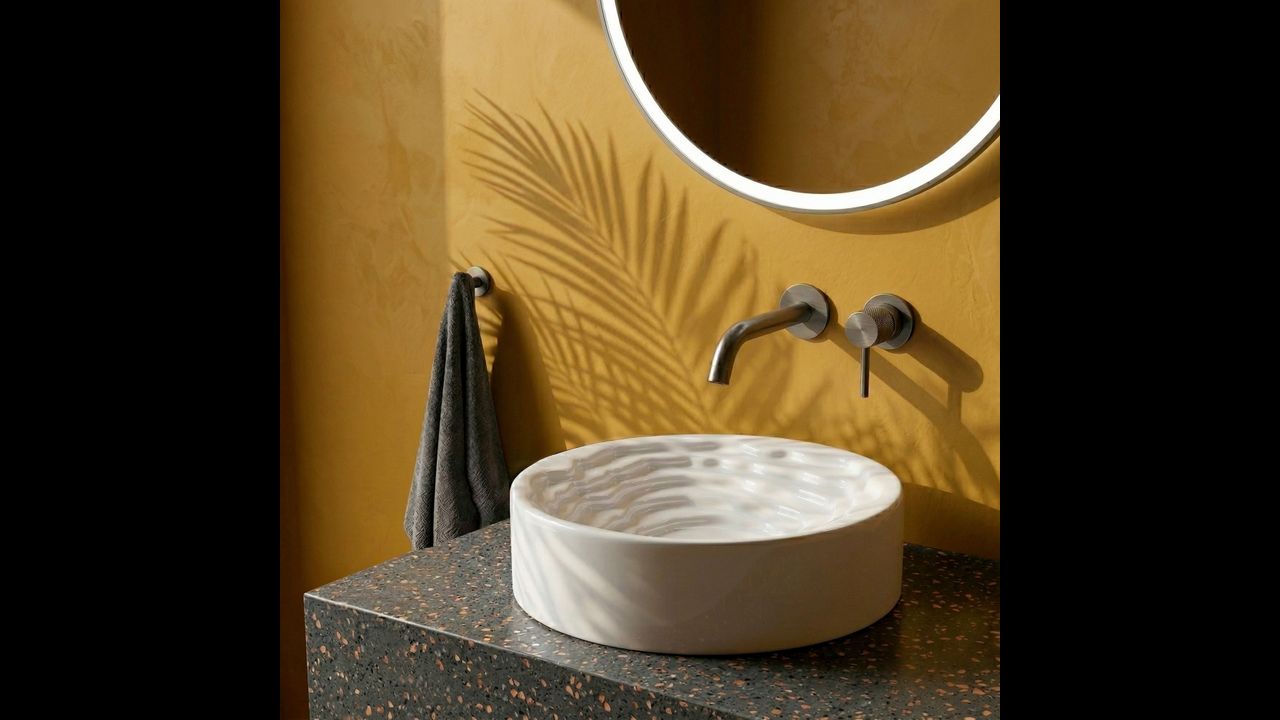 Odkryj nowy wymiar designu w swojej łazience z okrągłą umywalką nablatową Rea Calla. Ten ceramiczny model łączy w sobie minimalistyczną formę zewnętrzną z zaskakującym, artystycznym wnętrzem misy, stając się prawdziwą ozdobą każdego salonu kąpielowego.