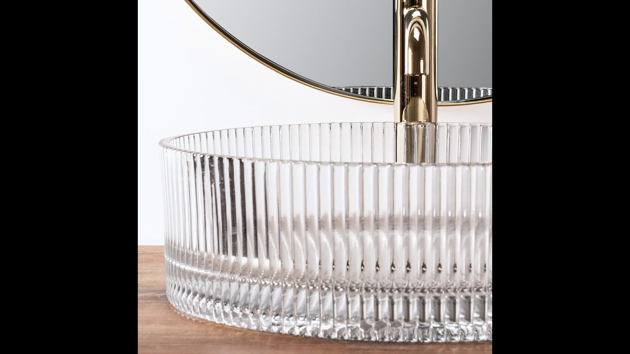Nowoczesna kryształowa umywalka z serii Ingrid będzie wspaniale wyróżniać się w twojej stylowej łazience. Została wykonana z wysokogatunkowego szkła, przystosowana do montażu na blacie bądź szafce. Ciekawy efekt wizualny podkreśli odbijające się w kryształkach światło. Umywalka szklana o kryształowym wykończeniu niewątpliwie wyróżnia się ciekawym wzornictwem i designem.