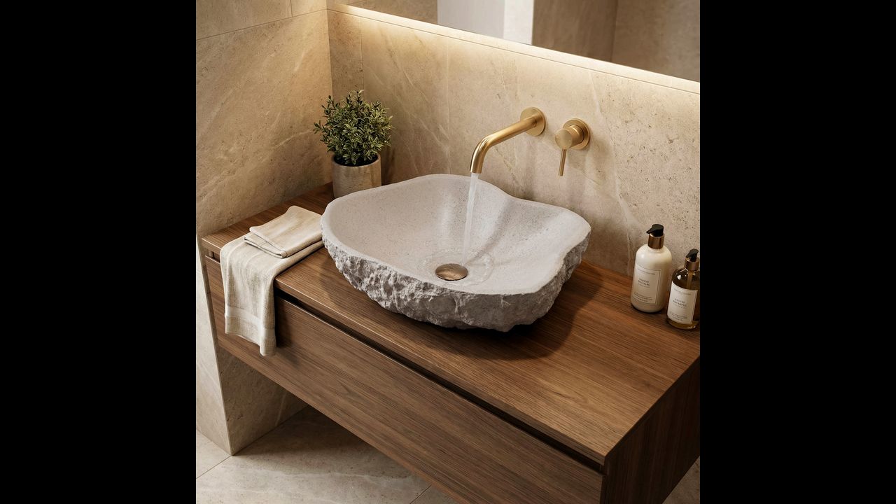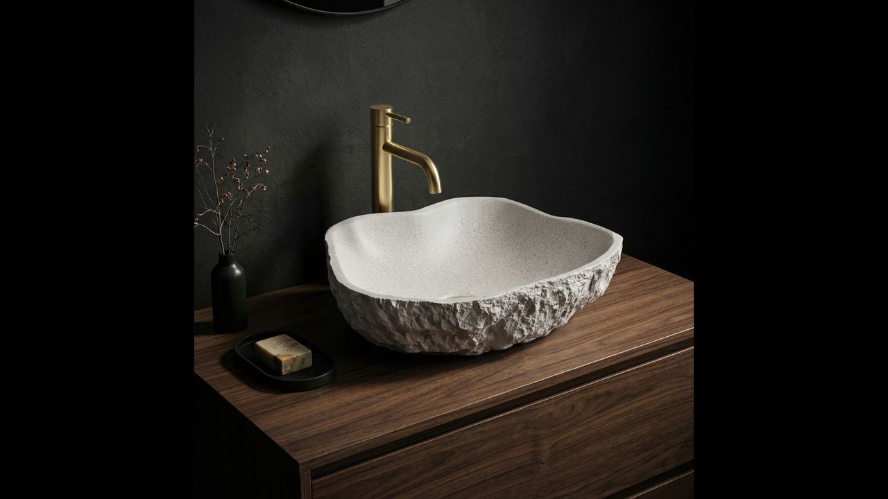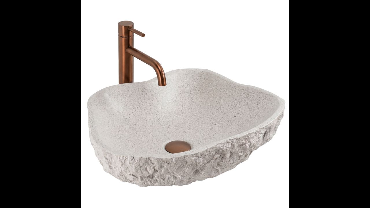Umywalka Rea Isla Beige to doskonały wybór do wnętrz urządzonych w stylu nowoczesnym, wabi-sabi, spa oraz tych inspirowanych naturą. Zestawienie organicznego kształtu z surową, kamienną estetyką czyni z niej niezwykle efektowny element wyposażenia, który ociepli każdą aranżację.