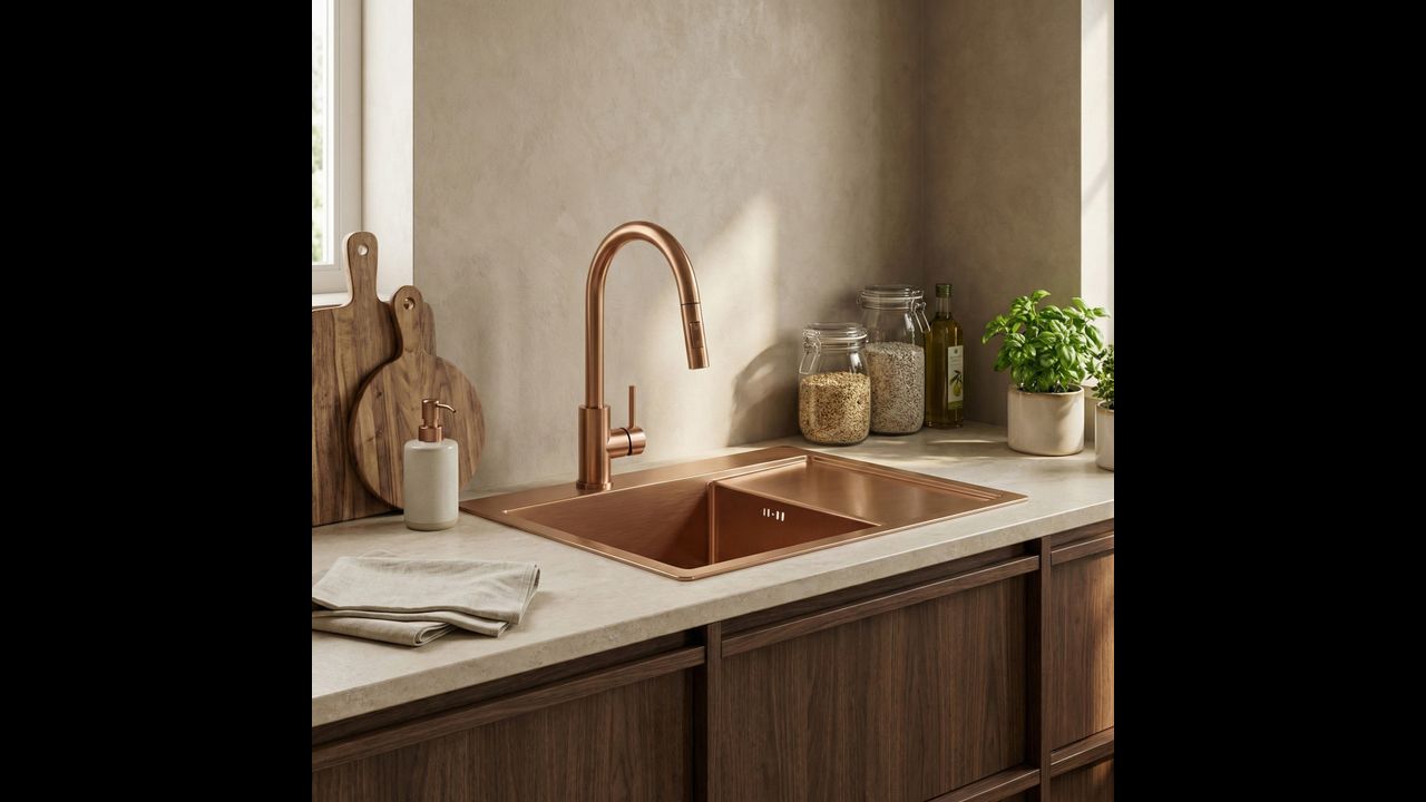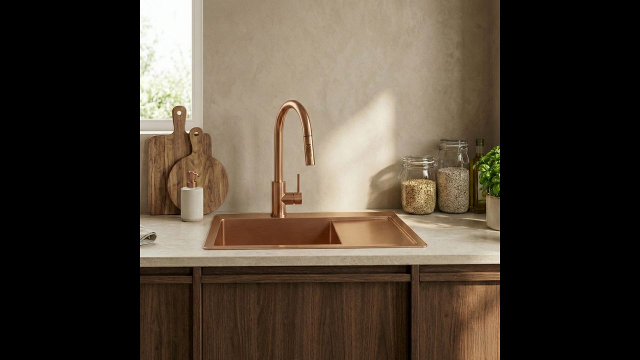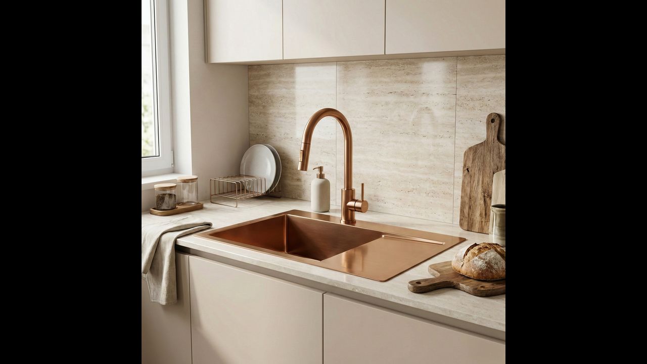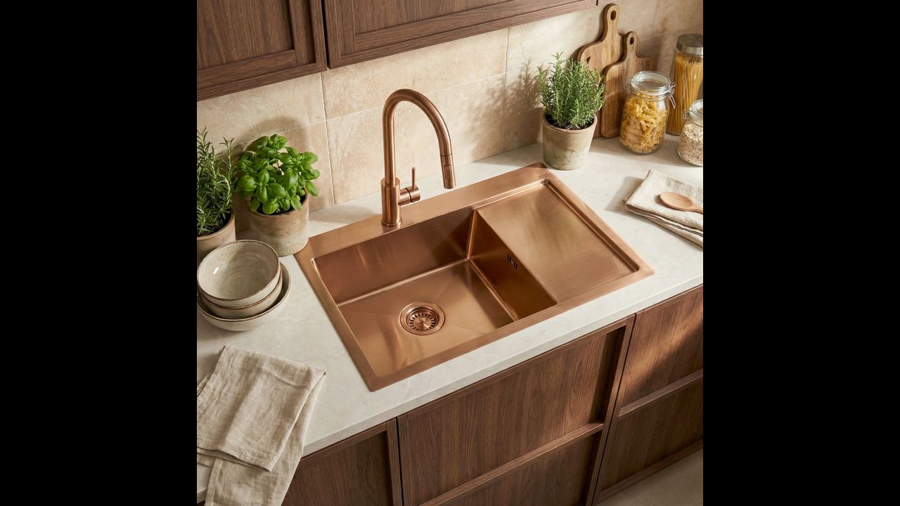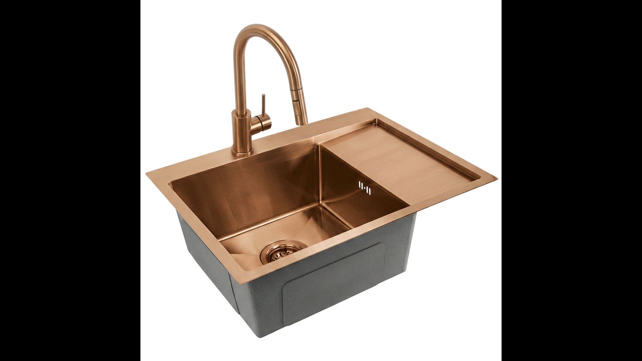 Zlewozmywak stalowy Fin Brush Copper to doskonałe połączenie nowoczesnego designu z codzienną praktycznością. Ten model w wykończeniu szczotkowanej miedzi świetnie sprawdzi się w każdej kuchni, oferując trwałość i niezawodność dzięki zastosowaniu solidnych materiałów.